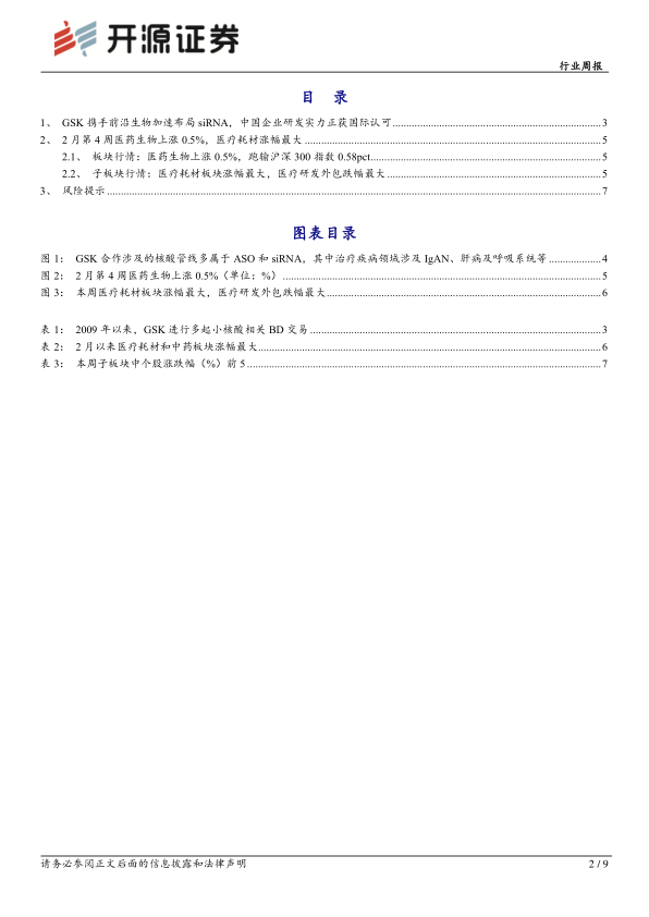 医药生物行业周报:GSK联手中国新锐,siRNA赛道布局再下一城