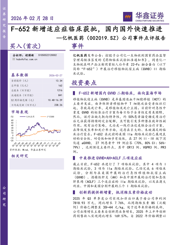 公司事件点评报告:F-652新增适应症临床获批,国内国外快速推进