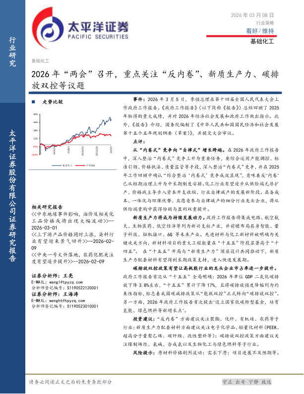 基础化工:2026年“两会”召开,重点关注“反内卷”、新质生产力、碳排放双控等议题