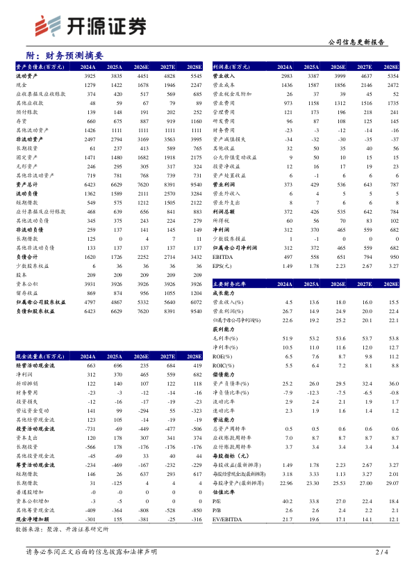 公司2025年实现营收33.87亿元(+13.56%,同比,下同),归母净利润3.72亿元(+19.20%)。2025Q4公司实现营业收入9.90亿元(+34.79%),实现归母净利润1.11亿元(+86.17%)。2025年公司销售费用率34.19%(+1.56pct),管理费用率5.11%(+1.04pct),费用率上升主要系市场推广、子公司合并及股份支付,研发费用率2.58%(-0.66pct)。公司盈利能力稳步提升,销售毛利率53.16%(+1.31pct),主要系产品结构优化和迭代升级,净利率10.93%(+0.46pct)。考虑到公司并购华舟及喜曼拿的管理费用及新品市场推广,我们下调2026-2027年并新增2028年盈利预测,预计2026-2028年归母净利润分别为4.65/5.59/6.82亿元(原值4.77/6.06),EPS分别为2.23/2.67/3.27元,当前股价对应P/E分别为27.0/22.4/18.4倍,但公司外延并购和筹划在H股上市,为海外业务拓展奠定基础。在国内高端家庭健康监测市场,与飞利浦达成战略合作获品牌授权,为长期增长注入动力,并且呼吸机业务增速强劲,因此维持“买入”评级。