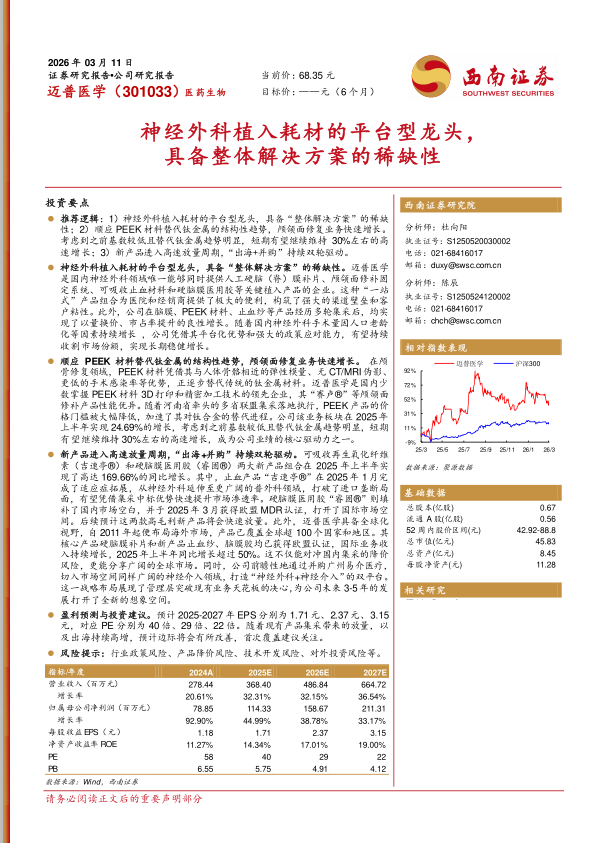 迈普医学(301033)