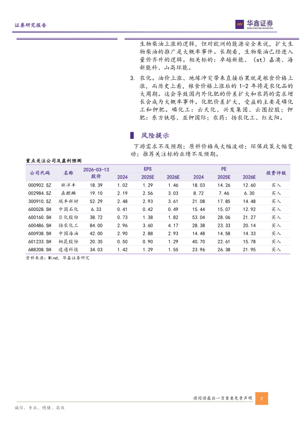 下游需求不及预期;原料价格或大幅波动;环保政策大幅变动;推荐关注标的业绩不及预期。