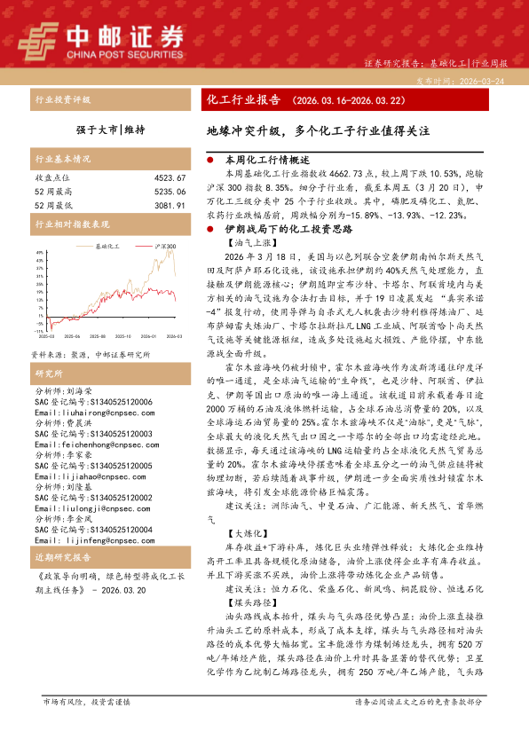 基础化工行业周报:地缘冲突升级,多个化工子行业值得关注