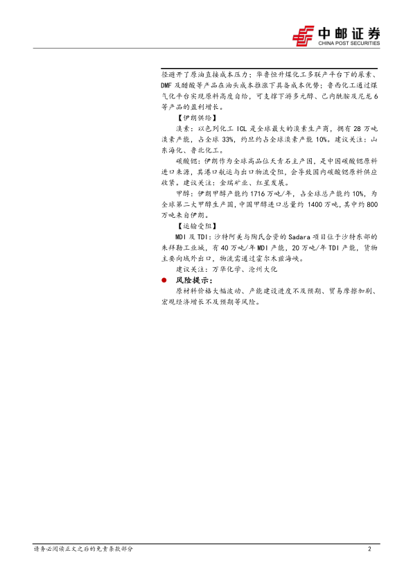 伊朗战局下的化工投资思路