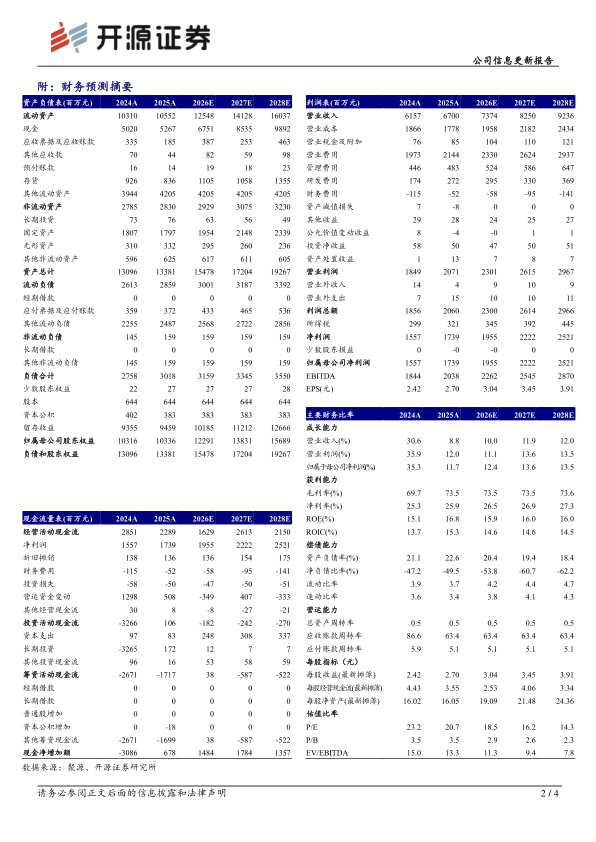 来看,2025年毛利率为73.47%(+1.05pct),净利率为25.95%(-0.35pct)。从费用端来看,2025年销售费用率为32.00%(-1.32pct),管理费用率7.21%(-0.33pct),研发费用率4.07%(+1.13pct),财务费用率-0.78%(+1.21pct)。考虑到宏观消费环境有所承压,我们下调2026-2027年并新增2028年盈利预测,预计归母净利润分别为19.55/22.22/25.21亿元(原预计21.05/24.74亿元),EPS为3.04/3.45/3.91元,当前股价对应PE为18.5/16.2/14.3倍,我们看好公司深耕阿胶品类、男科产品及产业链布局带来的长期发展潜力,维持“买入”评级。