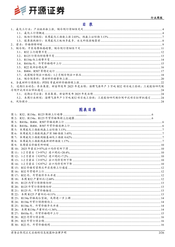 氟化工行业周报:氟化工产业链共振上涨,制冷剂行情韧性十足,静待外部局势明朗