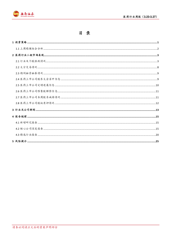 风险提示:医药行业政策不确定性超预期风险;研发进展不及预期风险;业绩