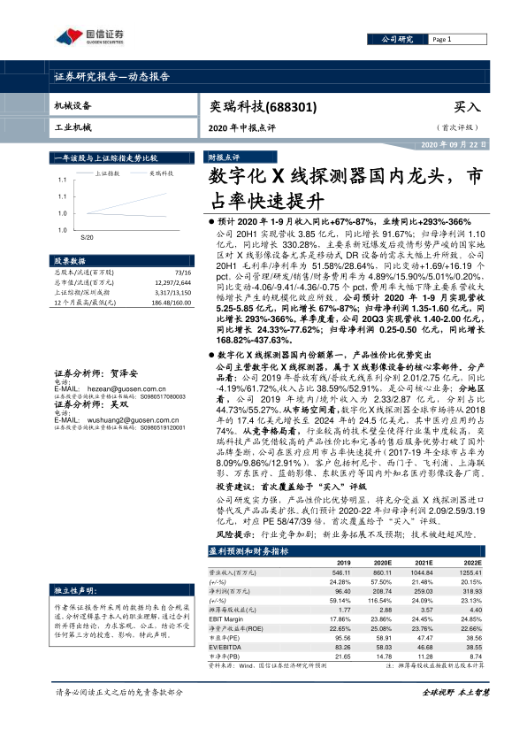 2020年中报点评:数字化X线探测器国内龙头,市占率快速提升