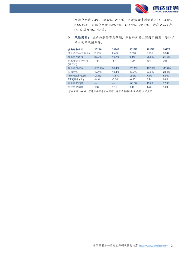 风险因素:主产品涨价不及预期,原材料价格上涨高于预期,海外扩产计划不及预期等。
