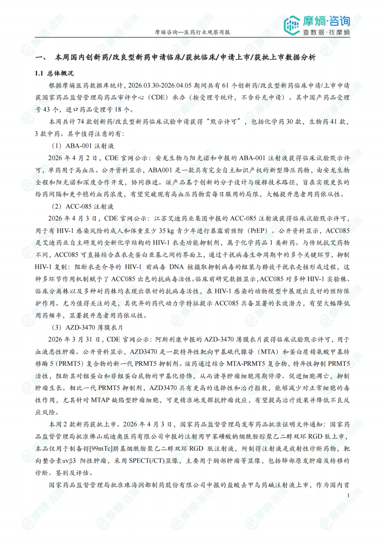 摩熵咨询医药行业观察周报(2026.03.30-2026.04.05)