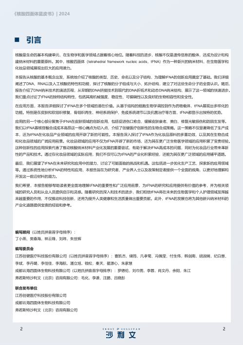 我们希望,本报告能够帮助读者更全面地理解tFNA的重要性和广泛应用前景,为tFNA的研究和应用提供有价值的参考,并为相关领域的研究人员和从业人员提供启示和灵感。随着研究的深入和技术的进步,我们相信tFNA将在未来的生物医学和个人护理领域发挥越来越重要的作用,不仅推动科技创新,还将为提升人类健康和生活质量做出重要贡献。此外,tFNA的发展也将为其他新兴纳米材料的产业化道路提供宝贵的经验和参考。
