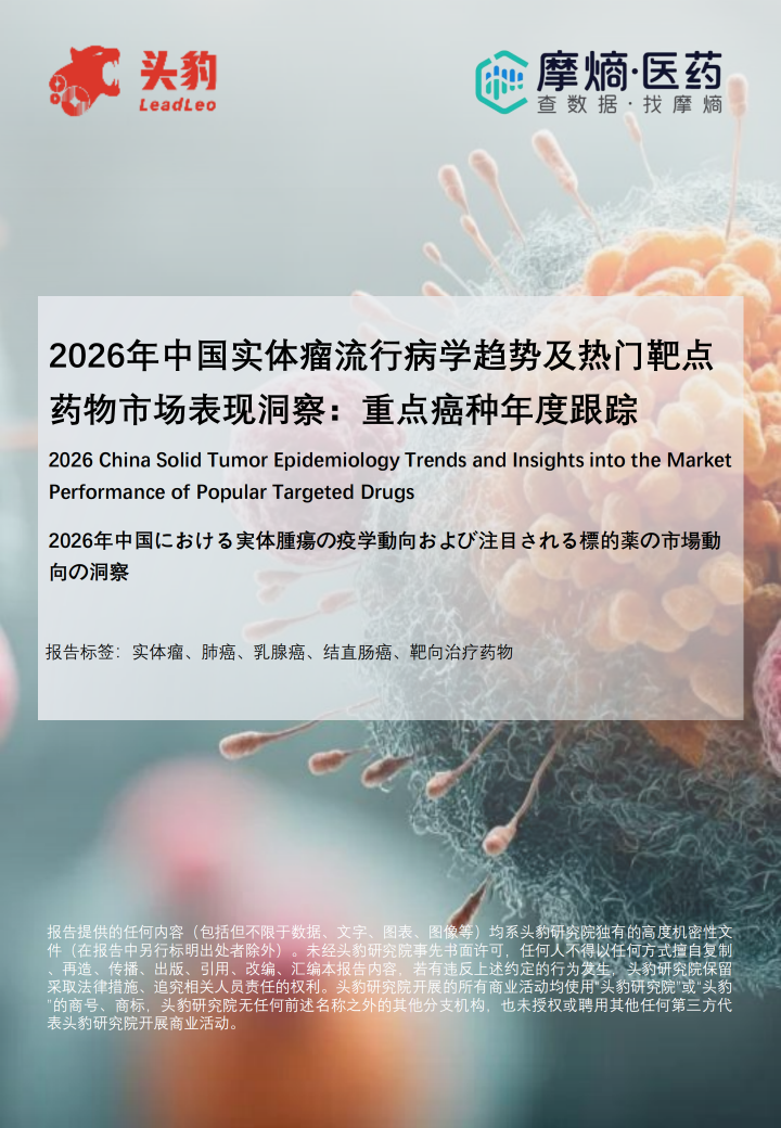 本报告聚焦中国实体瘤流行病学趋势及热门靶点药物市场表现,系统梳理行业发展脉络、核心驱动因素及前沿实践成果,为行业参与者、研究者及相关机构提供全面且具参考价值的专业洞察。
