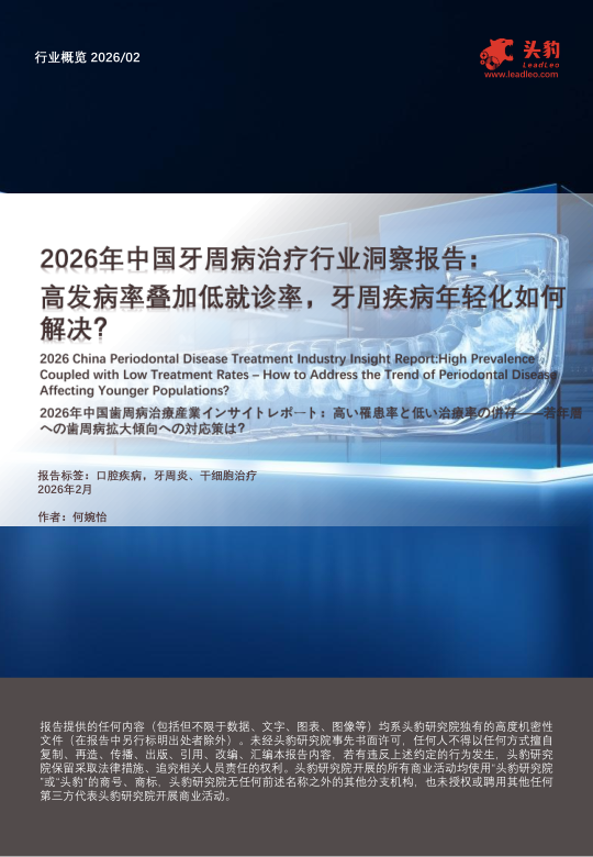 2026年中国牙周病治疗行业洞察报告:高发病率叠加低就诊率,牙周疾病年轻化如何解决?
