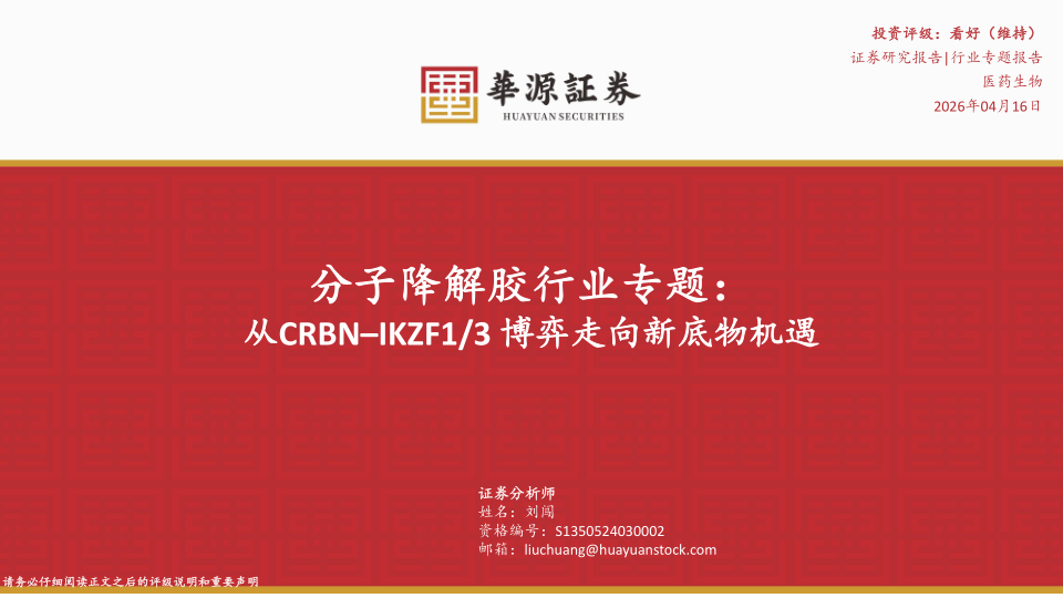 分子降解胶行业专题:从CRBN–IKZF1/3博弈走向新底物机遇