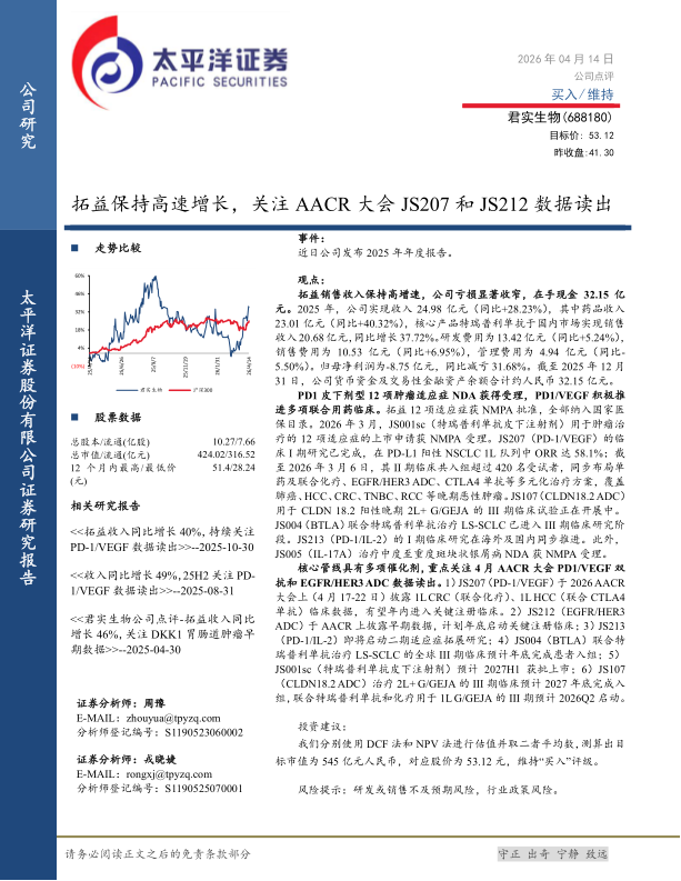 拓益保持高速增长,关注AACR大会JS207和JS212数据读出