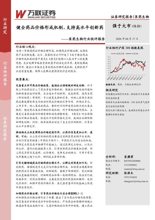 医药生物行业快评报告:健全药品价格形成机制,支持高水平创新药