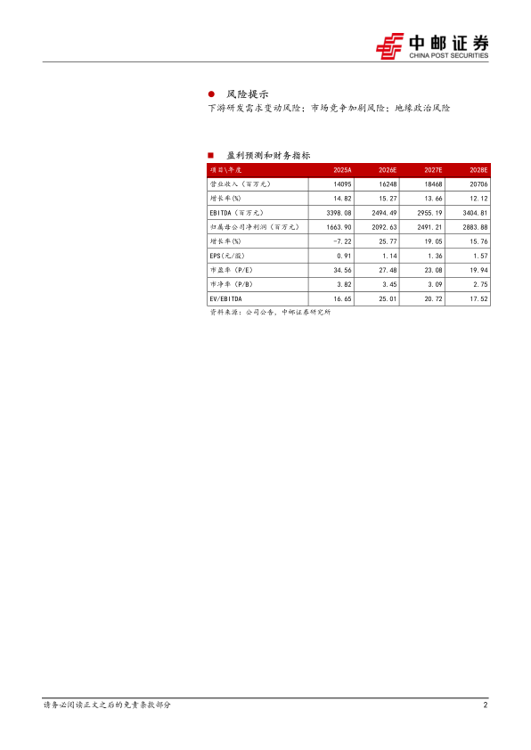 下游研发需求变动风险;市场竞争加剧风险;地缘政治风险