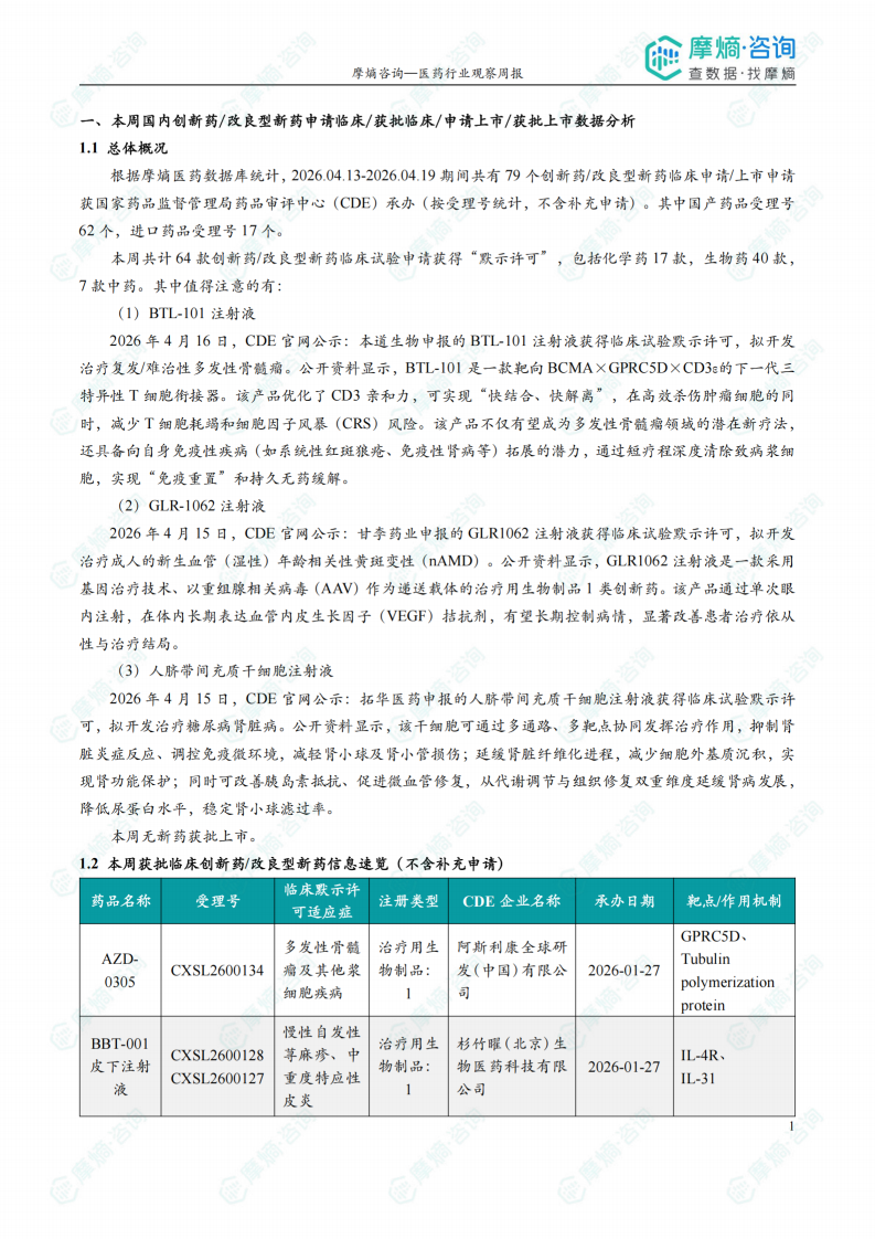摩熵咨询医药行业观察周报(2026.04.13-2026.04.19)