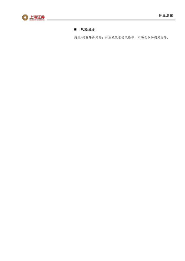 药品/耗材降价风险;行业政策变动风险等;市场竞争加剧风险等。
