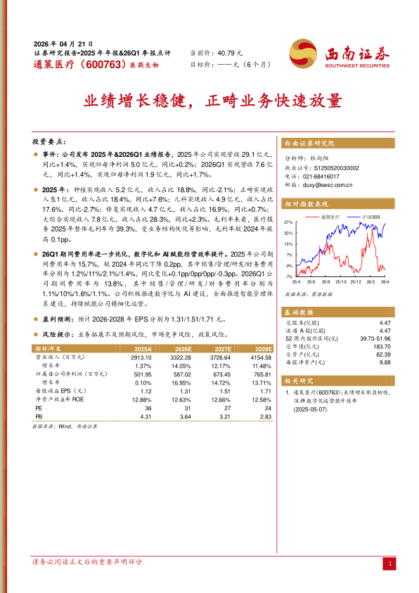事件:公司发布2025年&2026Q1业绩报告,2025年公司实现营收29.1亿元,同比+1.4%,实现归母净利润5.0亿元,同比+0.2%;2026Q1实现营收7.6亿元,同比+1.4%,实现归母净利润1.9亿元,同比+1.7%。