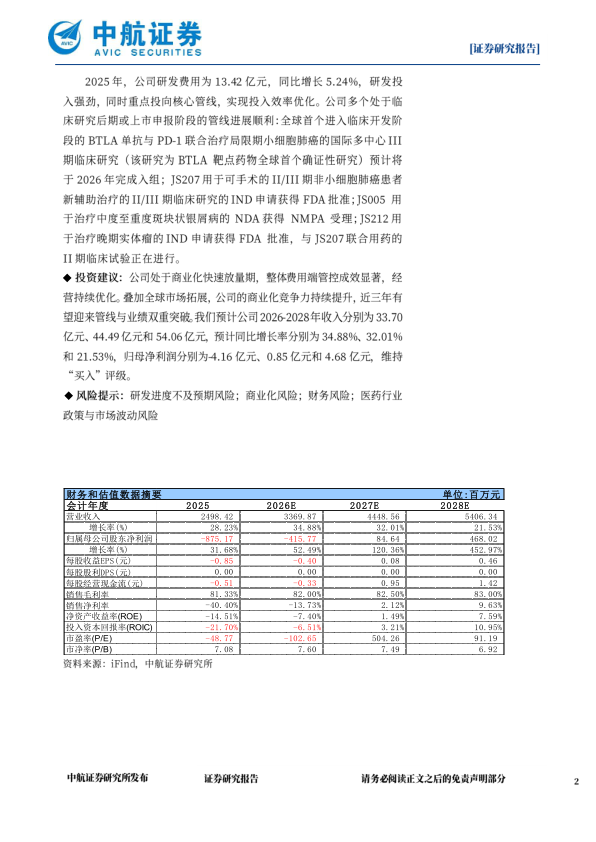 风险提示:研发进度不及预期风险;商业化风险;财务风险;医药行业政策与市场波动风险