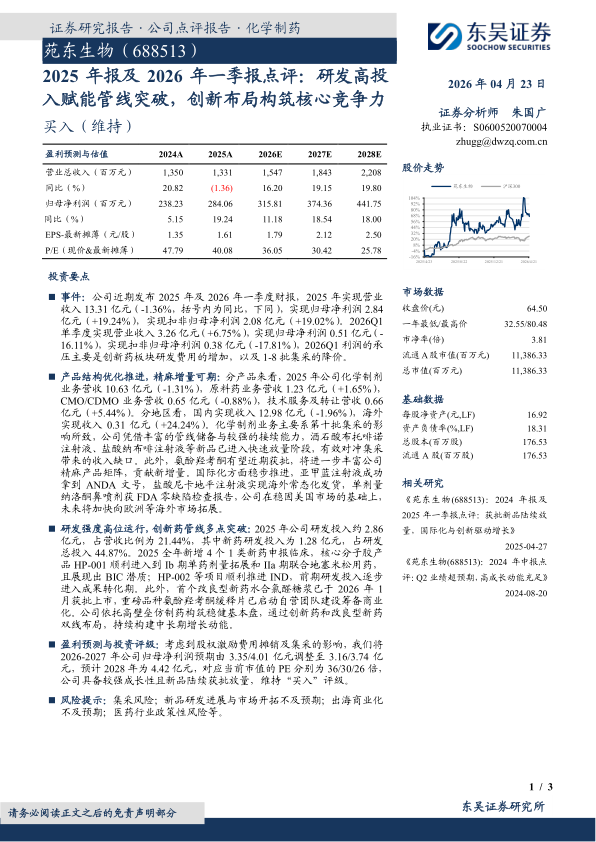 苑东生物(688513)