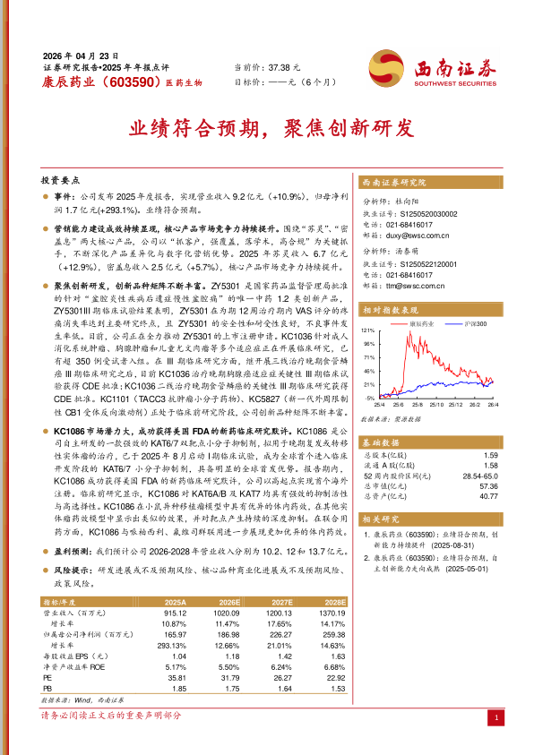 2025年年报点评:业绩符合预期,聚焦创新研发