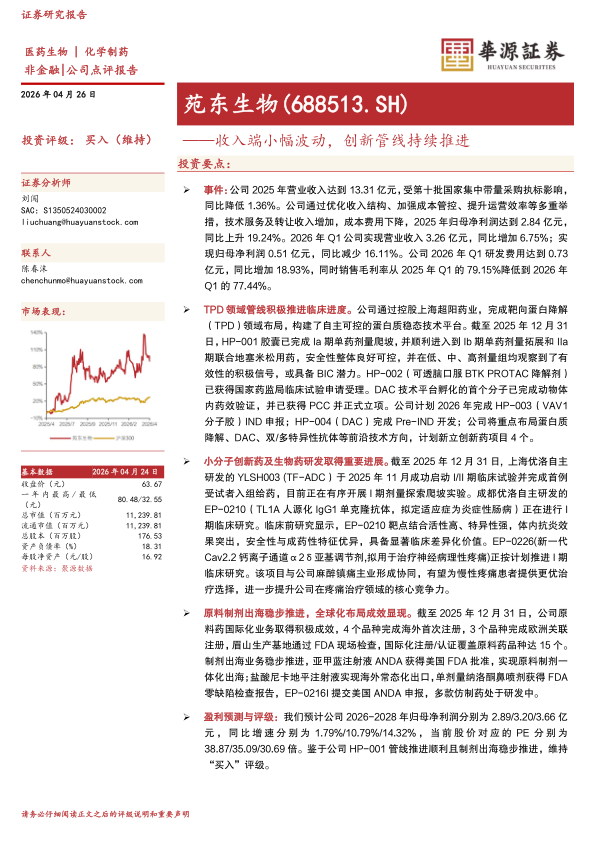 苑东生物(688513)
