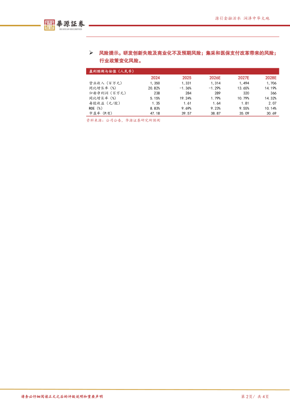 风险提示。研发创新失败及商业化不及预期风险;集采和医保支付改革带来的风险;行业政策变化风险。