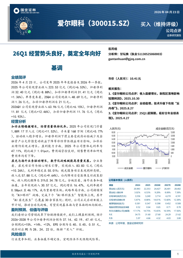 2026年4月23日,公司发布2025年年度报告及2026年一季报。