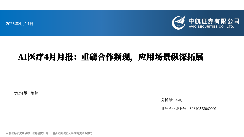 AI医疗4月月报:重磅合作频现,应用场景纵深拓展