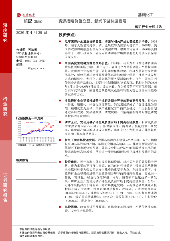 磷矿行业专题报告:资源战略价值凸显,新兴下游快速发展