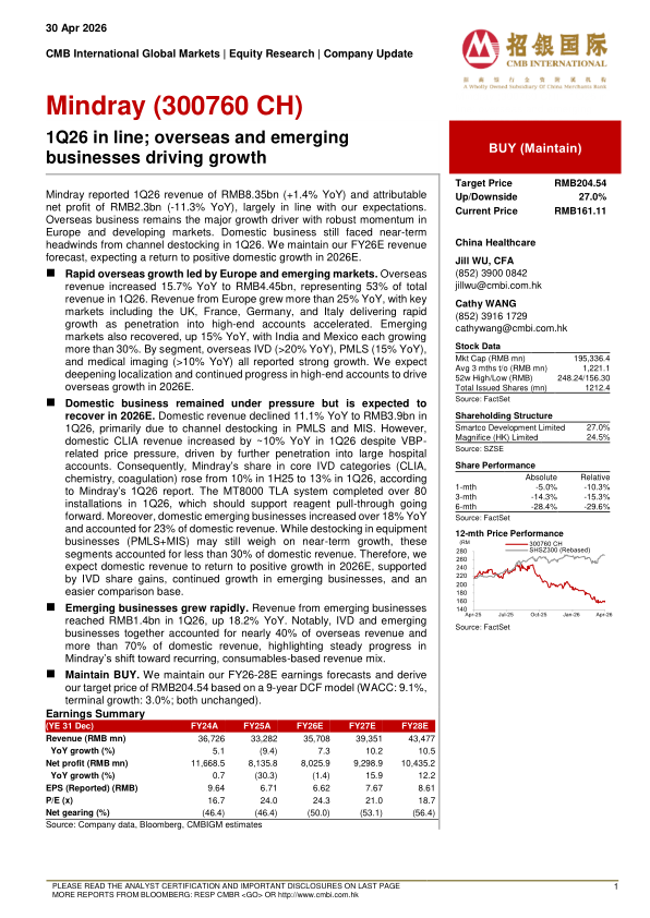 1Q26 in line; overseas and emerging businesses driving growth