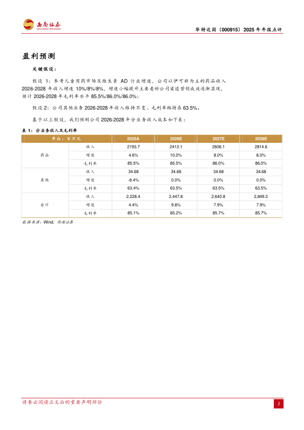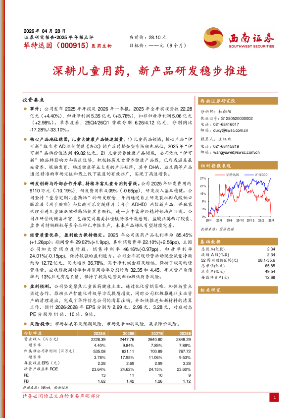 盈利预测。公司坚定聚焦儿童医药健康主业。通过优化营销策略、加强与重点渠道合作、推动生产智能化升级等方式提质增效。同时公司积极推进非主业资产的清理退出,完成了华特信息公司的清算注销,并加快推进知新材料的清算工作。预计2026-2028年EPS分别为2.69元、2.99元、3.28元,对应动态PE分别为11倍、10倍、9倍。