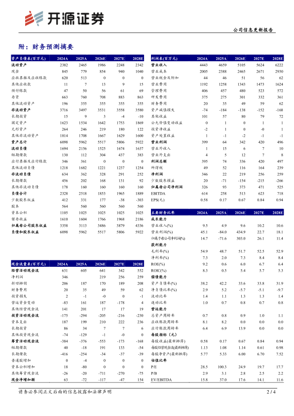 风险提示:产品销售及研发进展不及预期、子公司扭亏不及预期等风险。