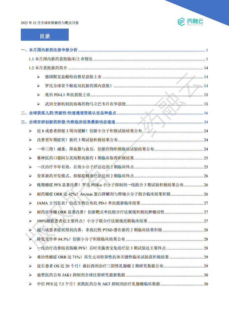 2023年12月全球在研新药与靶点月报
