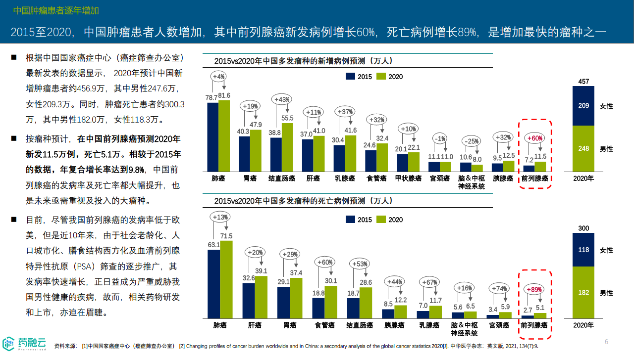 2015年至2020年,中国前列腺癌新发病例增长60%,死亡病例增长89%,增长速度远超其他常见肿瘤。这与中国人口老龄化、城市化以及PSA筛查的普及有关。