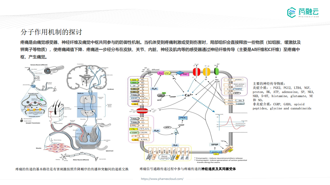 报告重点分析了NGF(神经生长因子)和TRPV1(辣椒素受体)两个潜力靶点。NGF作为神经营养因子,其拮抗剂的研发虽然前景广阔,但目前临床研究中也暴露出较大的副作用问题,部分项目已暂停。TRPV1作为瞬时受体电位通道家族成员,在疼痛信号传导中扮演重要角色,也是一个值得关注的研发靶点。