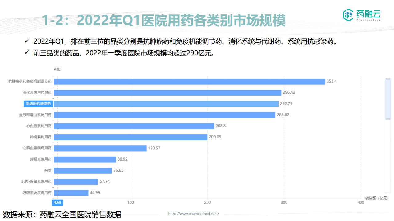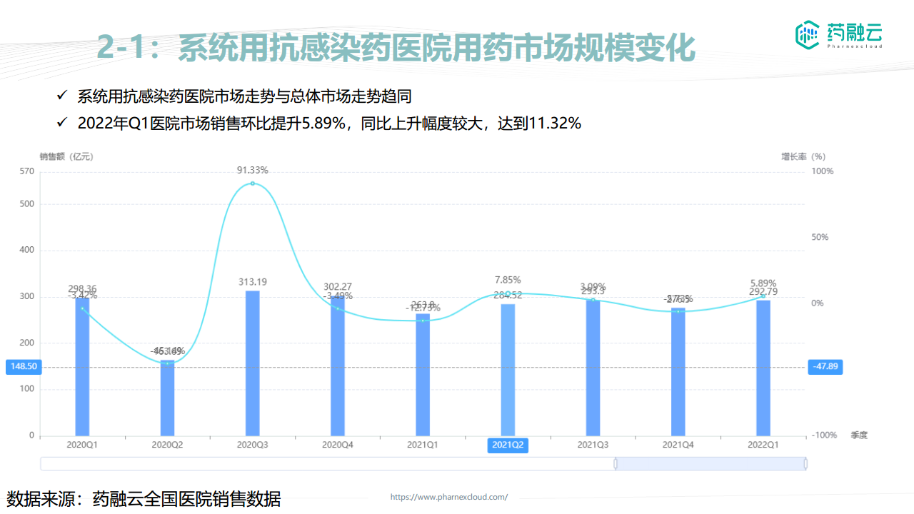 本节分析了总体医院用药市场规模变化以及抗感染药在其中的占比和表现。
