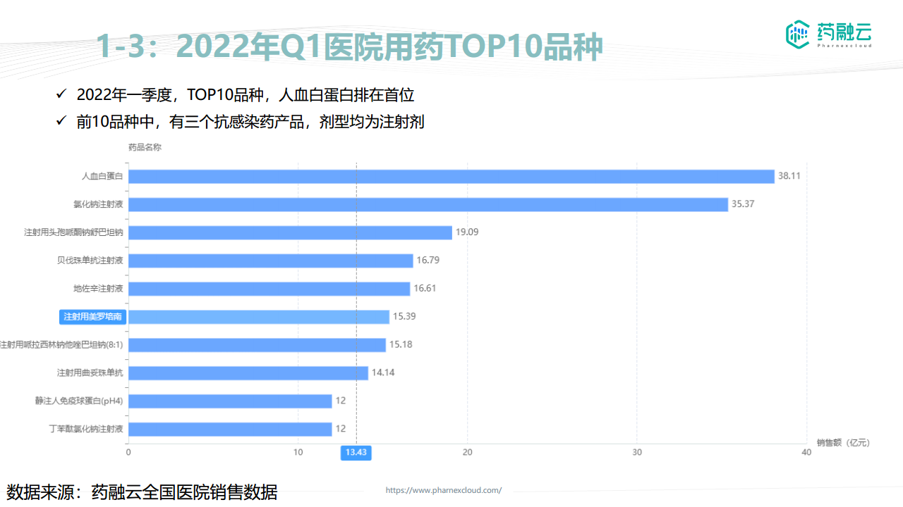 本报告基于摩熵医药全国医院销售数据,对中国抗感染药物市场进行数据分析,旨在挖掘普药机会点。报告核心观点如下: