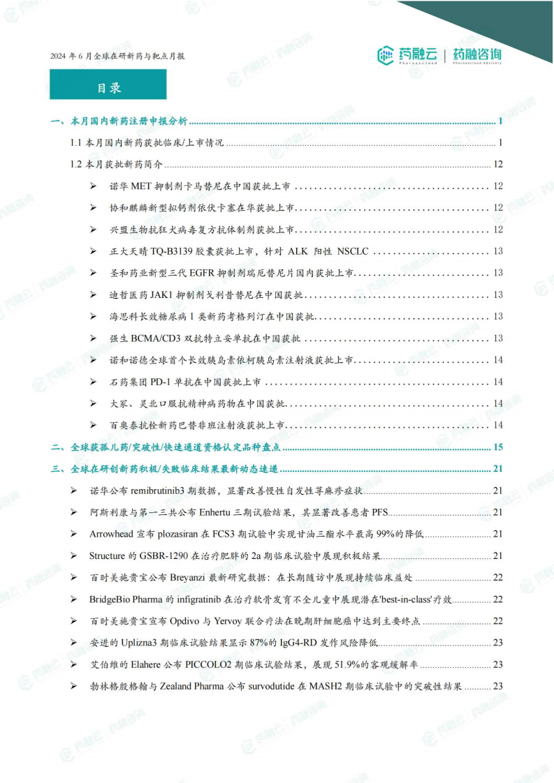 2024年6月全球在研新药与靶点月报