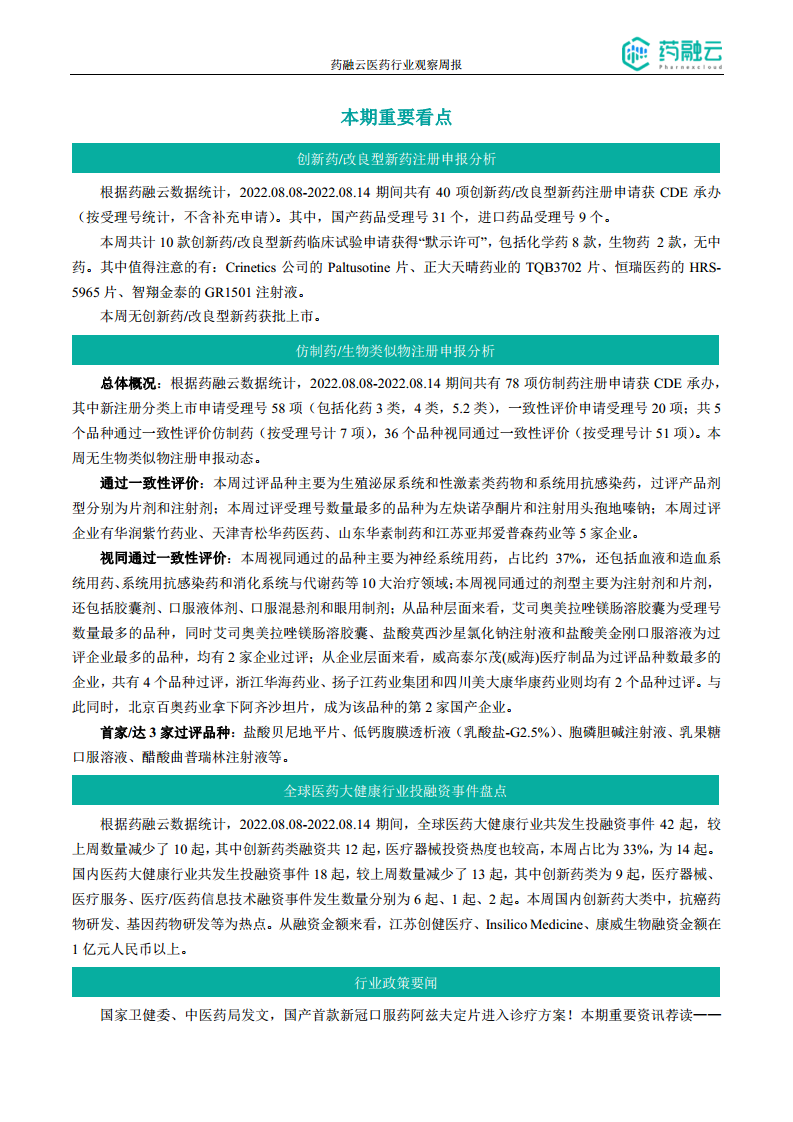摩熵咨询医药行业观察周报(2022.08.08-2022.08.14)