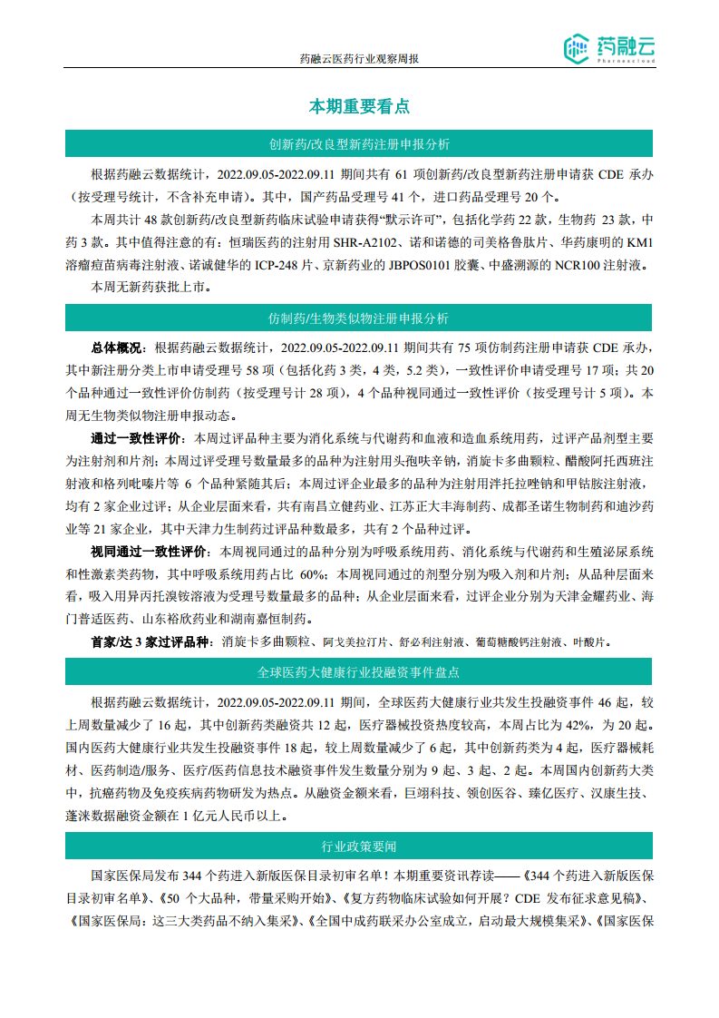 摩熵咨询医药行业观察周报(2022.09.05-2022.09.11)