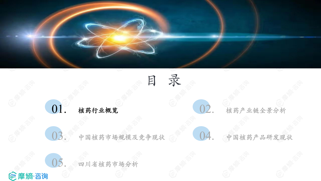 本报告从核药行业概览、核药产业链全景、中国核药市场规模及竞争现状、中国核药产品研发现状四个维度展开分析。