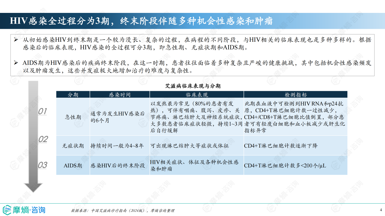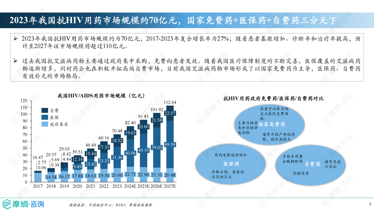 本报告基于摩熵咨询2024年10月发布的《市场研究专题报告六:抗HIV药物》进行分析,利用报告中提供的统计数据和图表,对中国抗HIV药物市场进行专业、分析性的解读。报告涵盖艾滋病流行病学、市场竞争格局以及市场趋势分析三个方面,旨在为相关企业和投资者提供市场洞察。