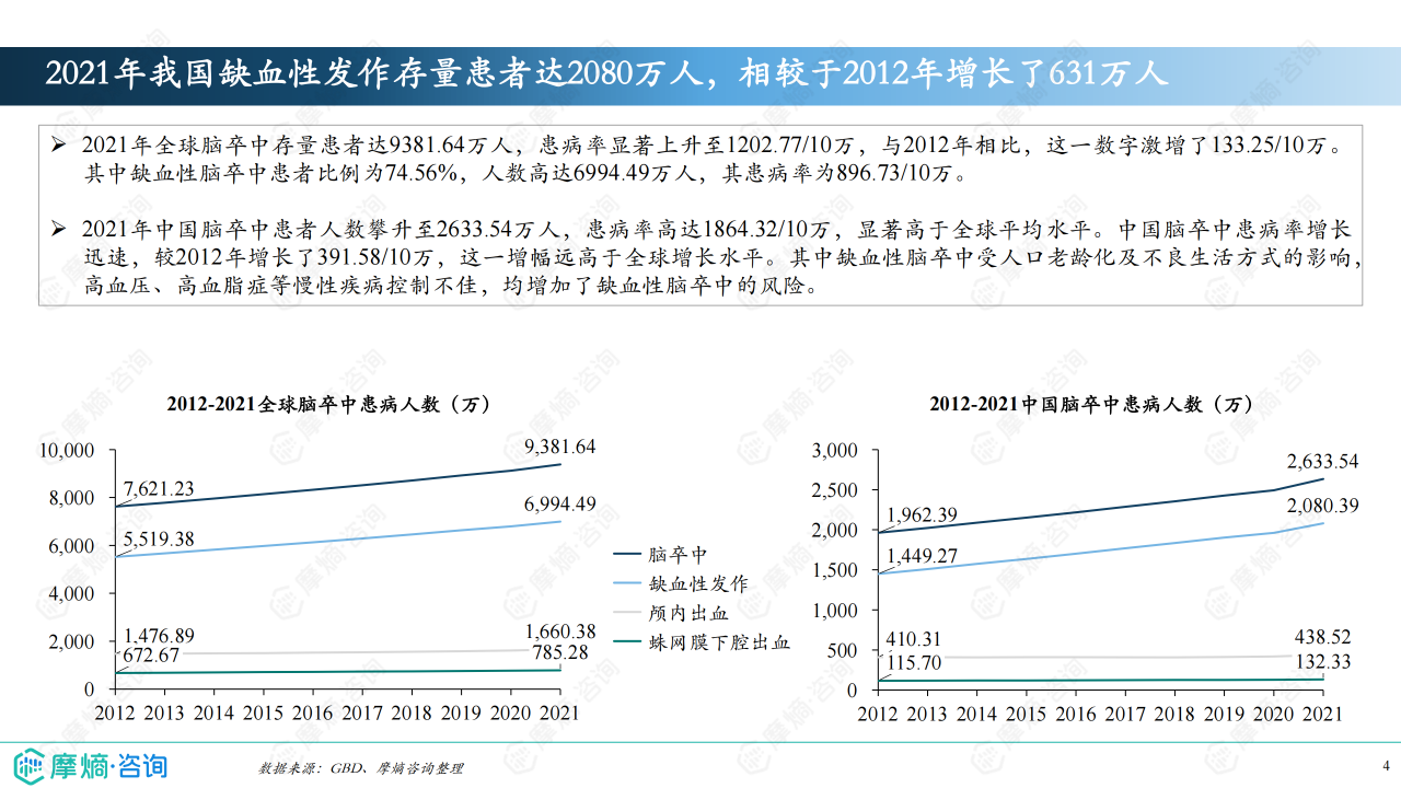 本报告基于摩熵咨询2024年10月发布的《市场研究专题报告十 急性缺血性脑卒中 药物》中的数据,对中国急性缺血性脑卒中药物市场进行分析。报告涵盖流行病学数据、市场竞争格局以及市场趋势,旨在为行业参与者提供专业的市场洞察。数据主要来源于GBD和摩熵医药销售数据库。