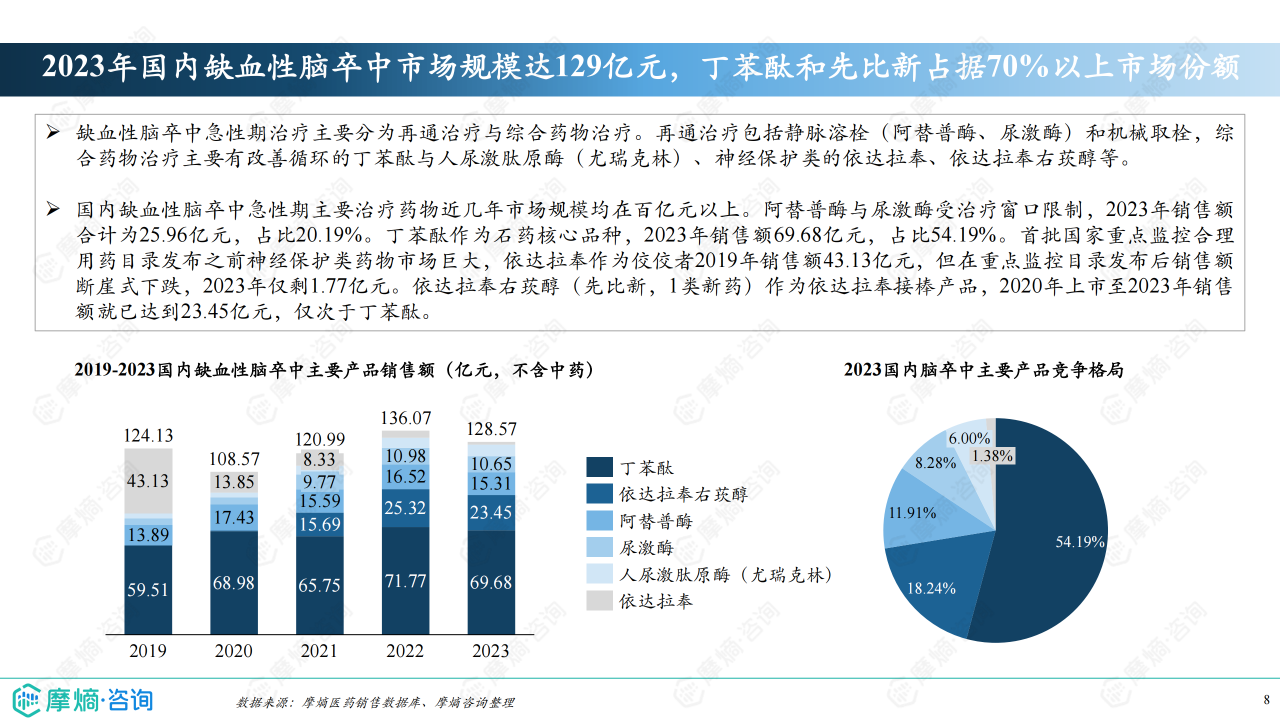 中国急性缺血性脑卒中患者数量庞大且持续增长,人口老龄化和不良生活方式是主要驱动因素。 巨大的患者基数为药物市场提供了广阔的发展空间。尽管部分药物受政策影响销售额下降,但整体市场规模仍保持在百亿元以上,未来仍有较大的增长潜力。 新药研发、创新疗法的出现以及医疗技术的进步,将进一步推动市场增长。
