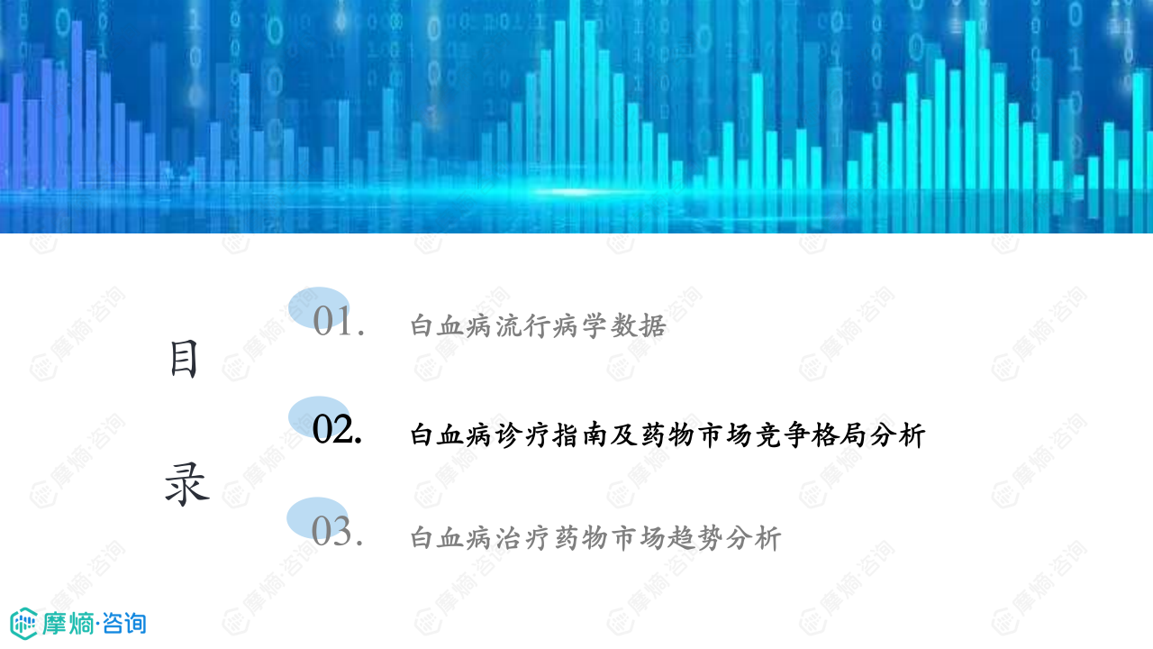 本报告基于摩熵咨询2024年12月发布的《市场研究专题报告二十一 白血病药物》进行分析,利用报告中提供的流行病学数据、诊疗指南及药物市场竞争格局、市场趋势分析等信息,对白血病药物市场进行专业、数据驱动的分析。报告涵盖了白血病的流行病学现状、主要亚型的市场竞争格局以及未来市场趋势,为相关企业和投资者提供参考。