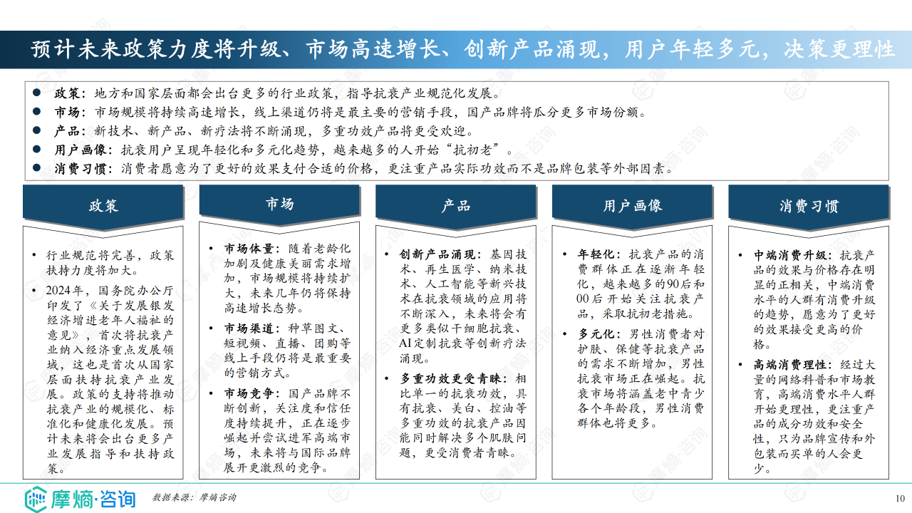 本报告基于摩熵咨询发布的《解码护肤抗衰:消费偏好洞察与市场格局分析》报告,对中国抗衰护肤品市场进行数据分析,得出以下核心观点: