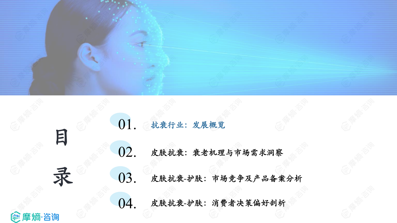 本报告从抗衰行业发展概览、皮肤抗衰老机理与市场需求洞察、皮肤抗衰护肤品市场竞争与产品备案分析以及消费者决策偏好剖析四个方面展开分析。